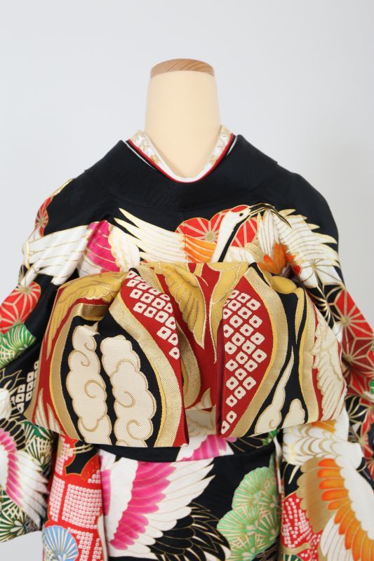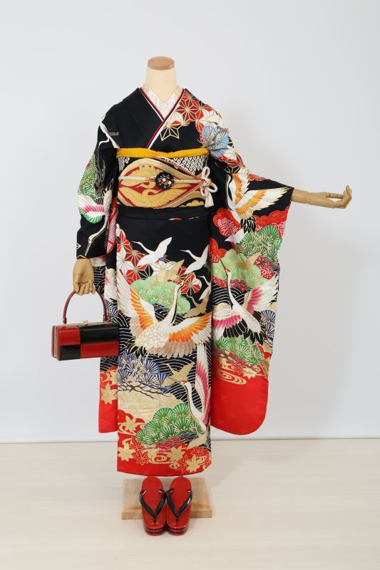 成人式フルセット レンタル 伝統古典 黒 鶴 豪華