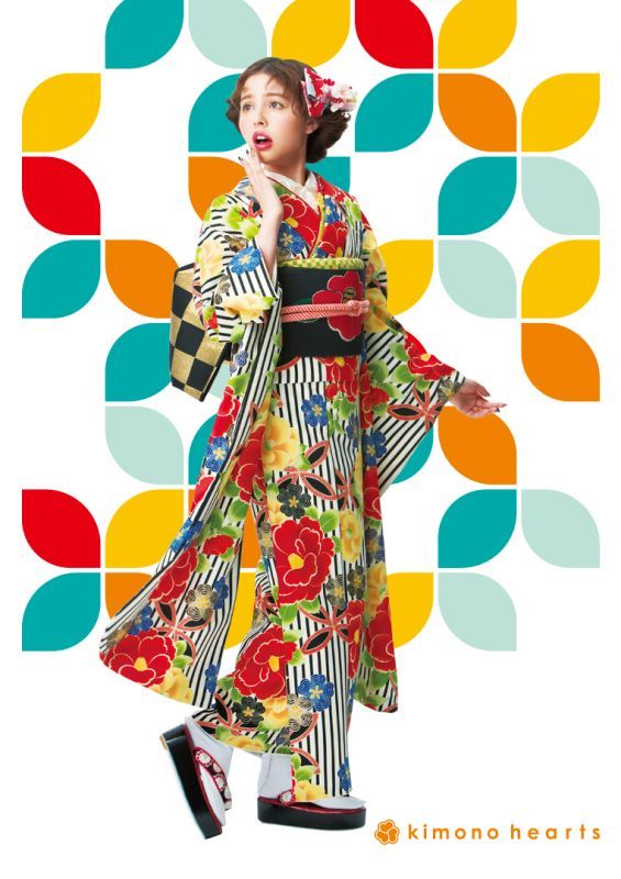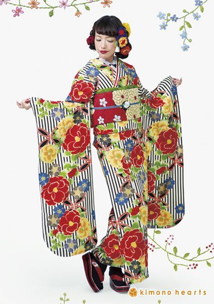 真っ赤な椿が印象的。黒を効果的に合わせて愛らしく、かつ引き締めて。