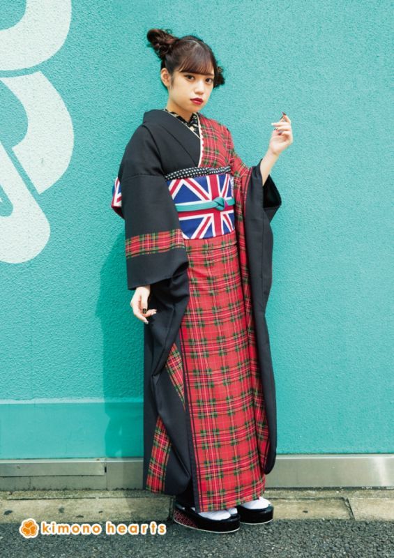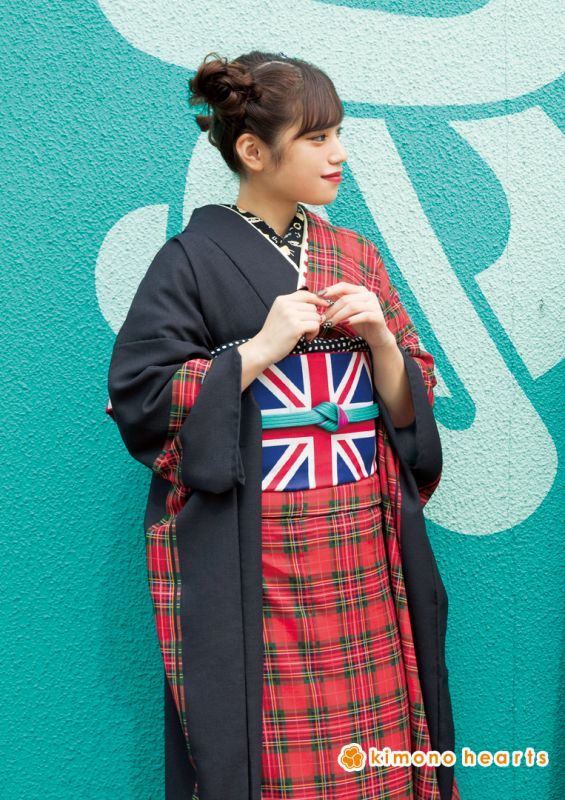 タータンチェックにユニオンジャックの帯。どれもキモノハーツオリジナルアイテムで揃えて、私だけのハタチをプロデュース!