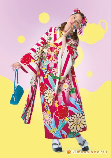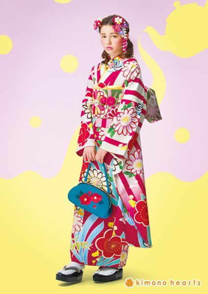 振袖 フルセット レトロモダン ピンク【縞/菊/梅】成人式