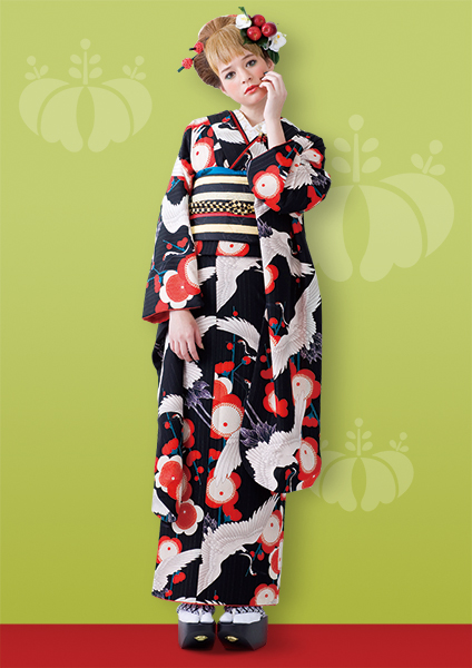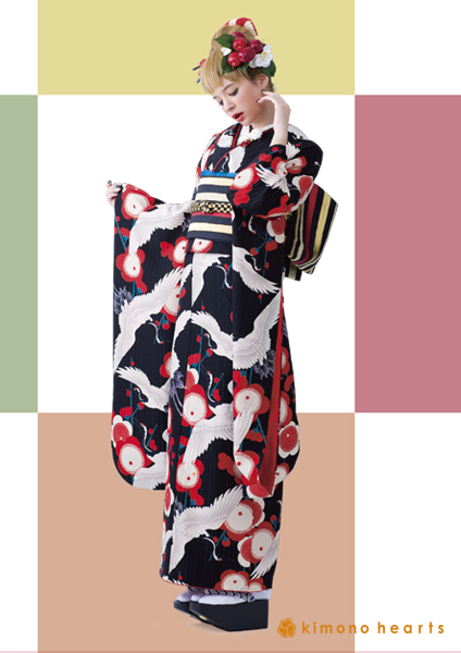 振袖 フルセット レトロモダン 【白鶴に深紅の梅柄振袖】