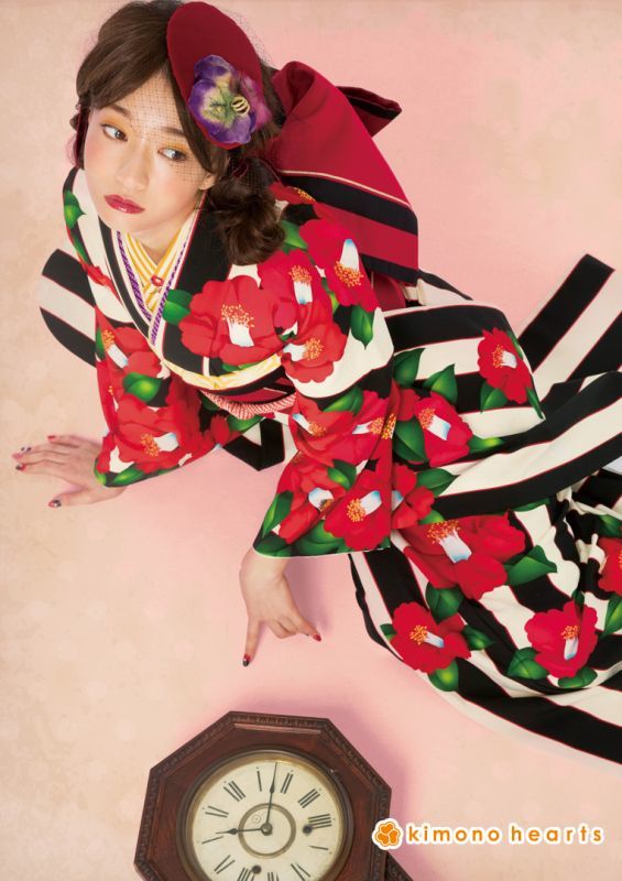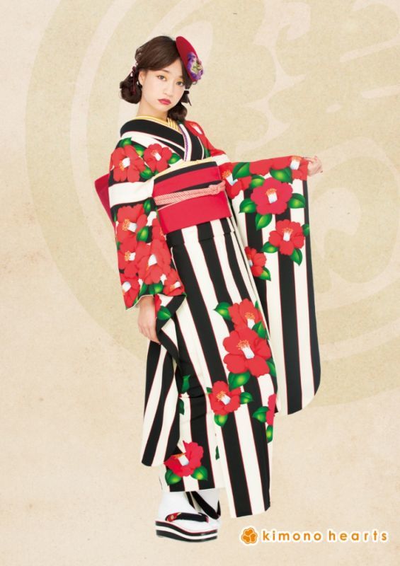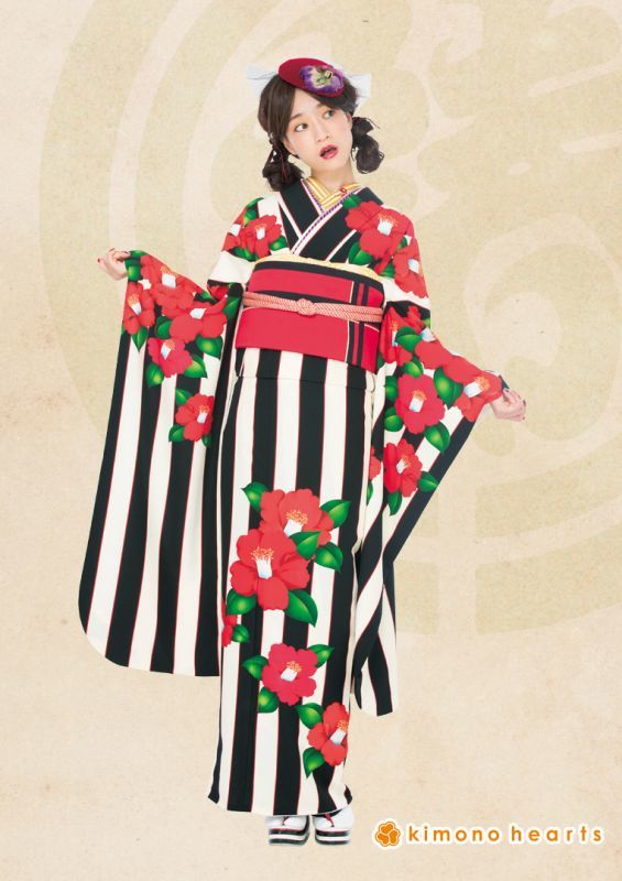 振袖 フルセット ノスタルジック 大島椿 【椿/縞】 成人式