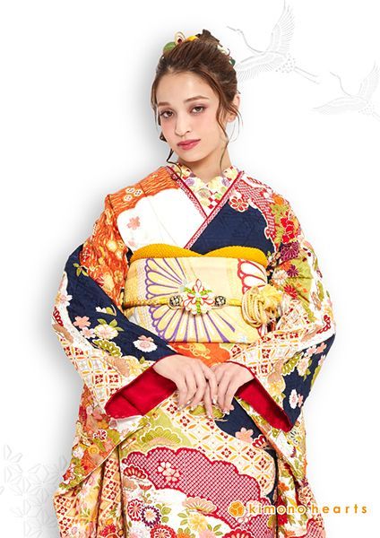 振袖 フルセット 伝統古典 紺 赤 【鹿の子】 成人式