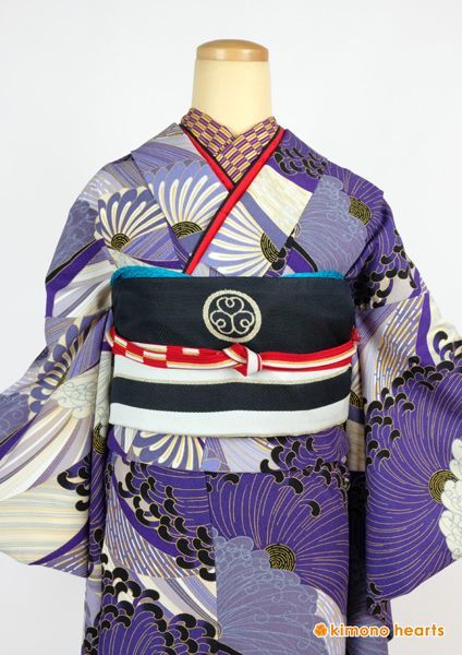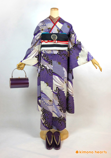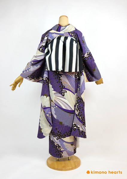 大正ロマン風の大胆なデザイン。 パープルの乱菊のグラデーションでシックに。 アンティーク風のコーデがおすすめ