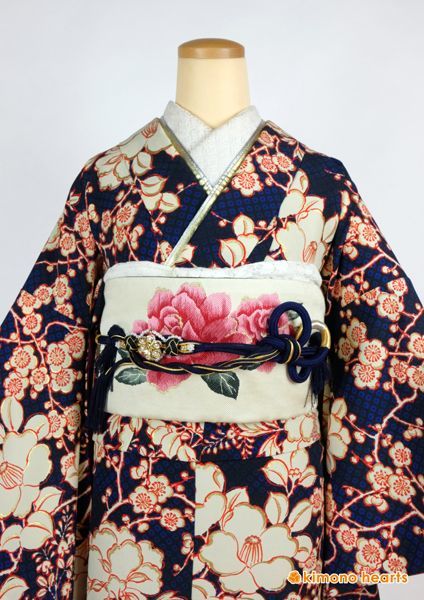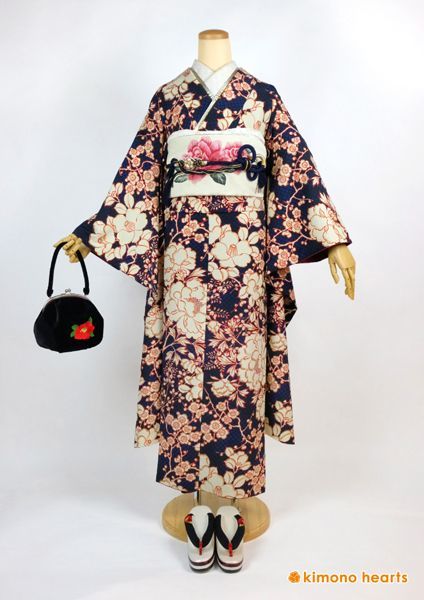 人気のモノトーン。ネイビーとアイボリーのお洒落バランス。 アンティーク風の花柄をクラシカルなコーデで。 ブランド 九重