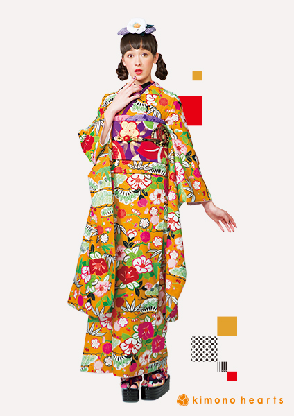 振袖 フルセット レトロモダン からし色 【松竹梅】 成人式