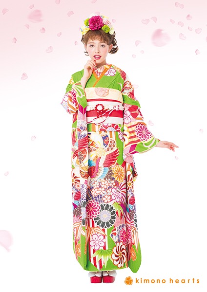 振袖 フルセット 舞姫古典 緑 赤 【鶴】 成人式
