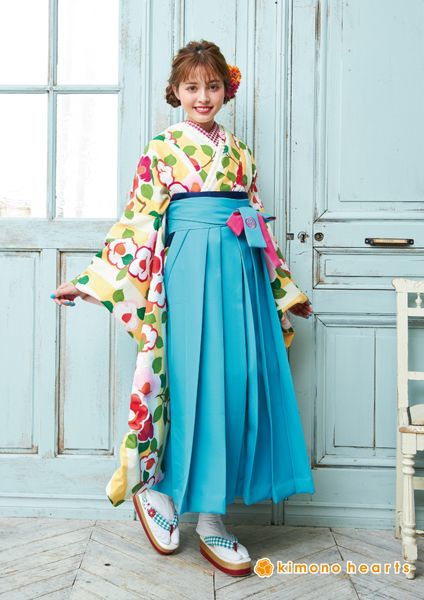卒業式 袴セット 振袖 レトロ 黄色 水色